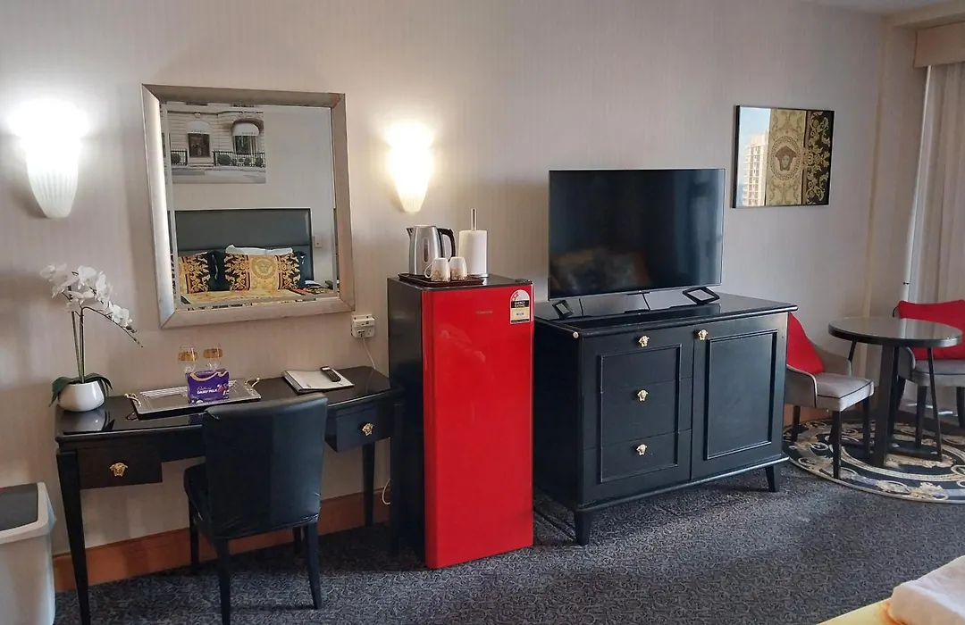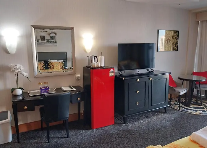 Zu den Zimmern gehören ein Balkon und ein Essbereich sowie ein Flachbildfernseher mit Satellitenkanälen für Ihren Komfort. Die Zimmer sind mit ein Schrank und ein Schreibtisch ausgestattet und verfügen über Ausstattung zur Kaffee- & Teezubereitung. Im Badezimmer gibt es eine Wellness-Badewanne, eine getrennte Toilette und eine Dusche sowie einen Haartrockner und Badelaken für zusätzlichen Komfort der Gäste. Man genießt einen Ausblick auf die Stadt von einigen Zimmern aus.
